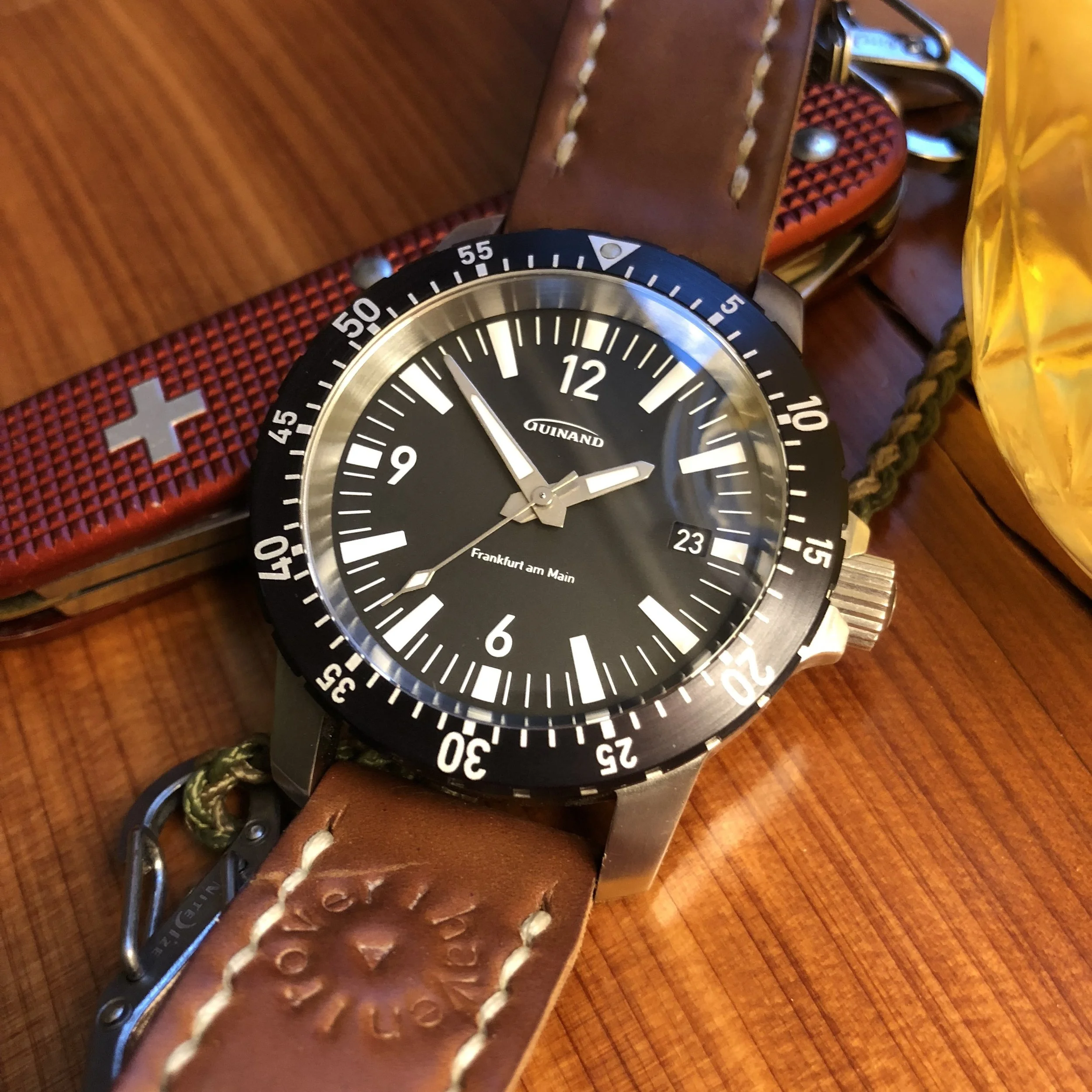 So… a history interwoven with the legendary Helmut Sinn. A direct-to-consumer business model. Responsive customer service exemplified by the company president and a cheerful company rep. Surprisingly reasonable prices. This is why owning a Guinand feels like your best chance to travel back in time and own a brand new vintage Sinn or vintage Guinand, and the bonus is your new watch is modern, freshly assembled, meticulously adjusted, and backed by a warranty. The vintage watch experience with none of the vintage watch headaches.