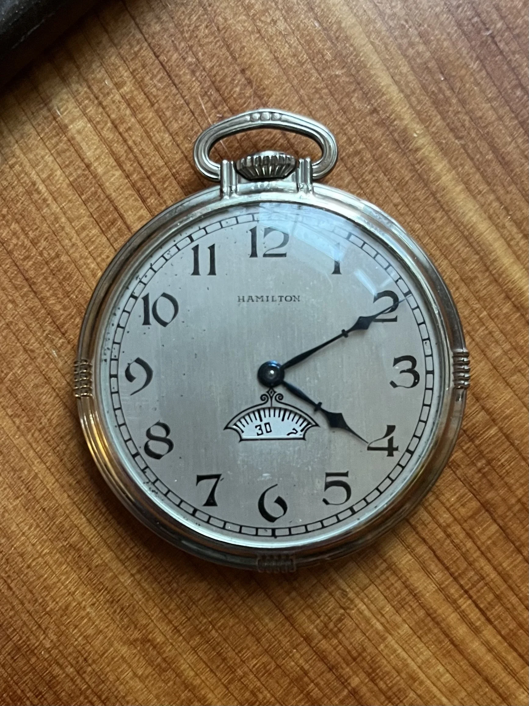 Seven years ago, almost to the day, I wrote an article about the importance of keeping family heirloom watches. Keeping them going, keeping them useful, and keeping them relevant. My advice then was: service it, wear it, write it down. Well, last year at Thanksgiving, my long suffering spouse paid a holiday visit to her family in suburban Chicago, a 3-hour drive for us. I would normally have made the trip, but we couldn’t get a dog sitter so we decided to divide and conquer. At some point during her visit she texted me a picture of a pocket watch and asked did I have any interest in it?